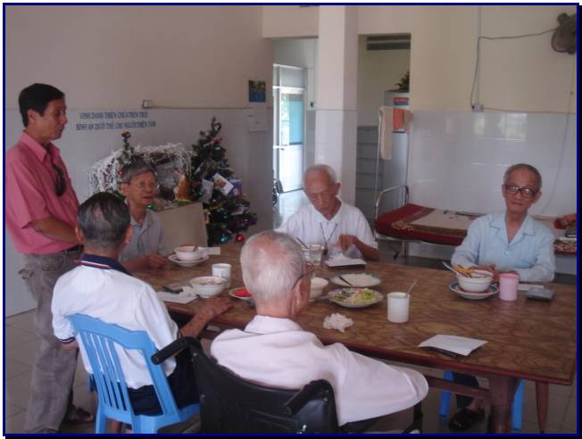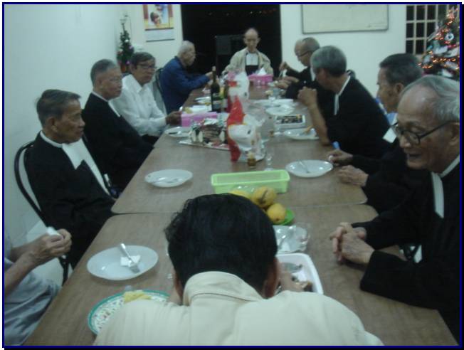 Đúng như các anh đă mong muốn đă ủy thác cho Ngọc lo tổ chức cho các Frères Nhà Hưu Dưỡng La San Mai Thôn một réveillon Noel 2010 để các Frères, thầy dạy của chúng ta được hưởng một đêm Noel thật ấm cúng trong t́nh cảm biết ơn của học tṛ . Trưa ngày 24/12, Ngọc anh Phan Quang Toàn, một người bạn cùng Promo đă mang đến refectoire của Nhà hưu Dưỡng những món quà Noel của các đàn anh 58...