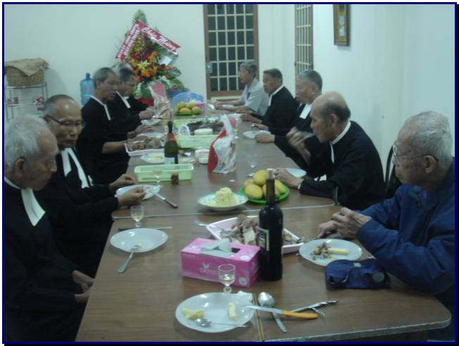 ôti 6 Kg , một buche đặc biệt dành cho người già do một patisserie danh tiếng làm cho các Frères...Gặp giờ cơm trưa, chúng tôi đă tṛ chuyện, hàn huyên chuyện xưa, chuyện nay cho các Frères vui, sau đó Ngọc đă trao tận tay mỗi Frère một bao thư carte chúc mừng của các anh, kèm 500.000 VND ( xem file attached " BAO THƯ NOEL 2010...). Các Frères rất vui nhờ Ngọc chuyển lời cám ơn đến tất cả các anh " Ta-be-ghiền" 58 dễ thương....